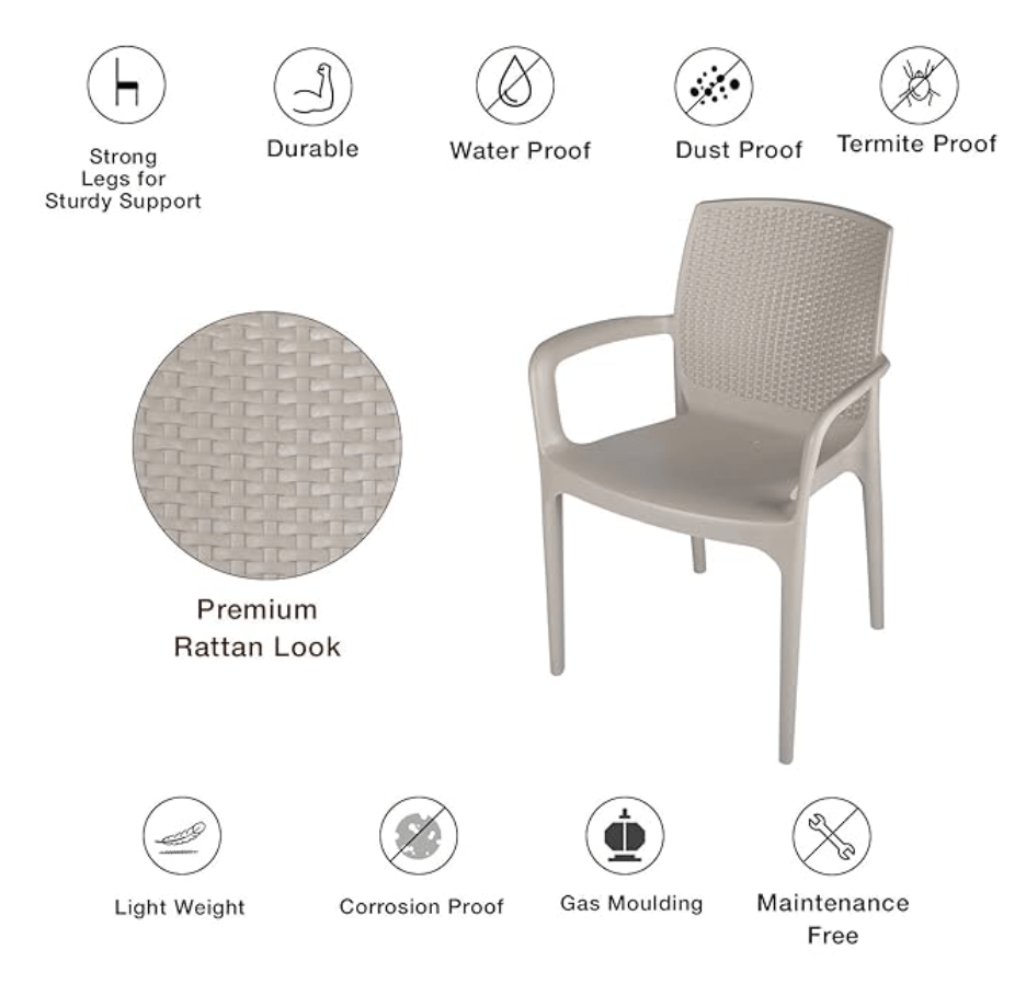 सुप्रीम टेक्सास प्लास्टिक चेयर (डार्क बेज, 4 का सेट), स्टैंडर्ड, (TexasDarkBeige4)