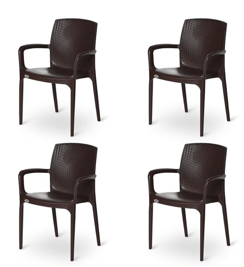 घर, बाहर और बगीचे के लिए सुप्रीम टेक्सास प्लास्टिक कुर्सियाँ (4 का सेट, ग्लोबस ब्राउन)