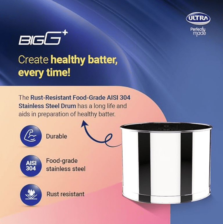 बहु-उपयोगी ड्रमपीसने के बाद आप घोल को उसी ड्रम में रख सकते हैं। इससे आपको घोल को दूसरे बर्तन में रखने की झंझट से छुटकारा मिल जाता है। आसान और तेज़। |
