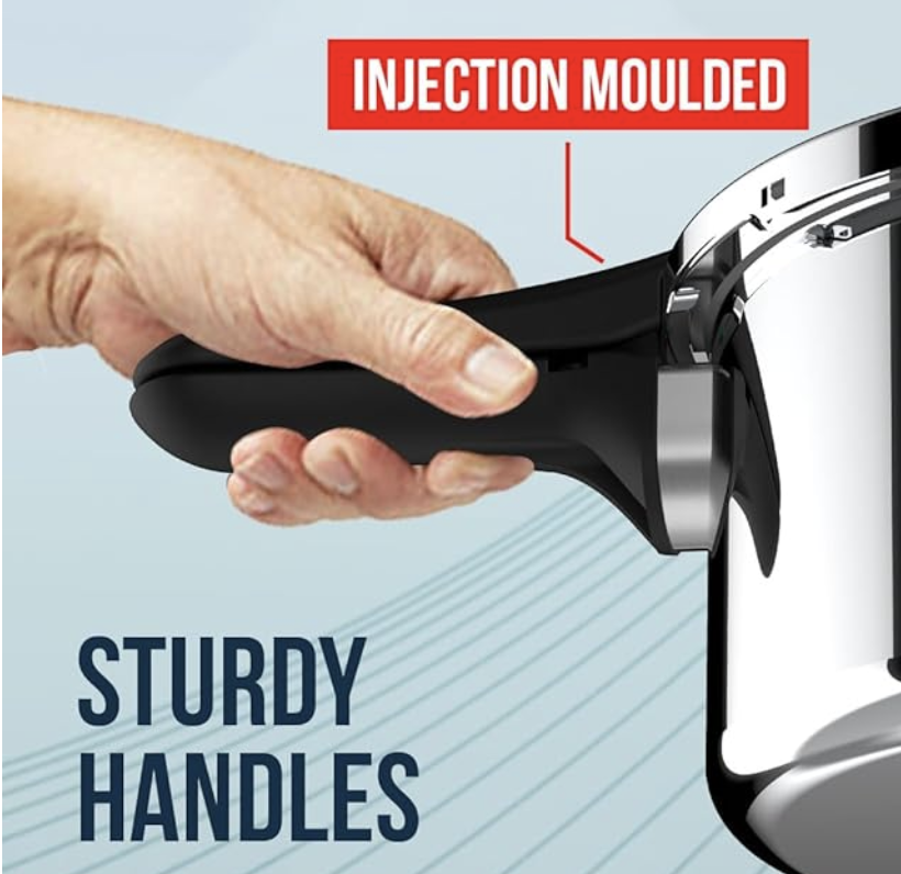- 3 स्तरित ट्रिपली - यह प्रेशर कुकर तेजी से गर्मी अवशोषण और समान गर्मी वितरण को सक्षम बनाता है, जिससे कुशल खाना पकाना सुनिश्चित होता है और लगातार स्वादिष्ट परिणामों के लिए जलने से बचाव होता है।