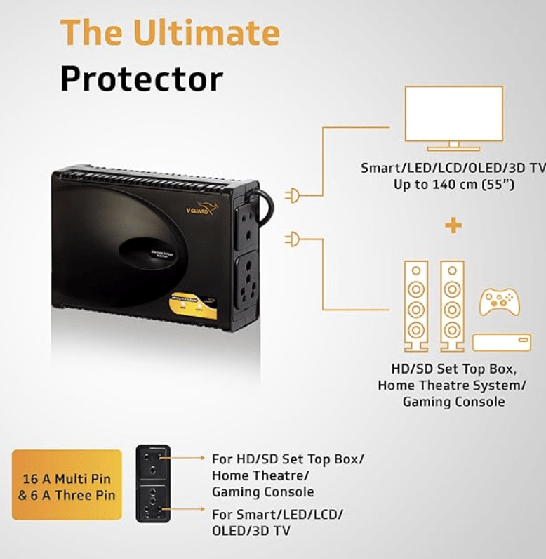 140 सेमी (55 इंच) तक के स्मार्ट/एलईडी टीवी के लिए वी गार्ड क्रिस्टल प्लस स्टेबलाइजर