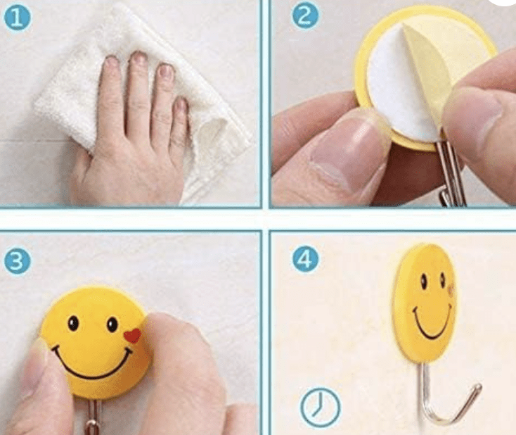 दीवार पर लटकाने वाला हुक स्माइल- इमोजी फेस मज़बूत स्टिकर के साथ (9 पीस)