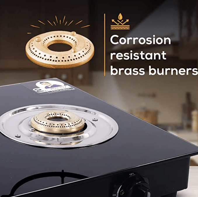 जंग प्रतिरोधी पीतल बर्नर, 6 मिमी कठोर ग्लास टॉप, स्वचालित इग्निशन, खरोंच और गर्मी प्रतिरोधी