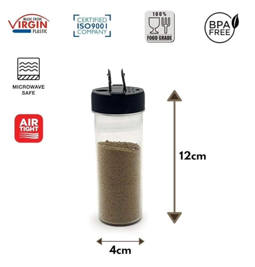 Mahaware Polycarbonate Plastic Multipurpose Spice Container | Salt and Pepper Shaker Dispenser Set with Stand for Dining Table | Set of 1