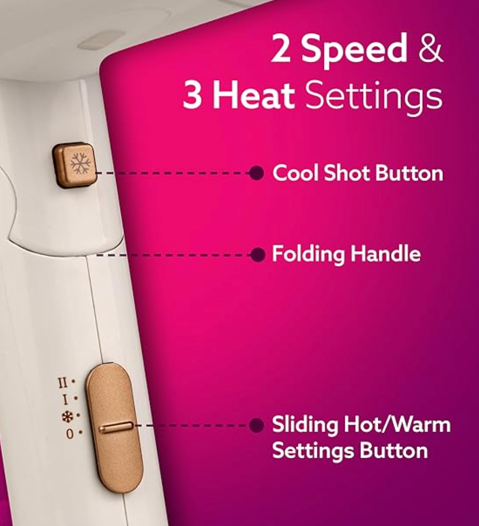 - 2 Speed 3 Temperature Settings with Cool Shot button