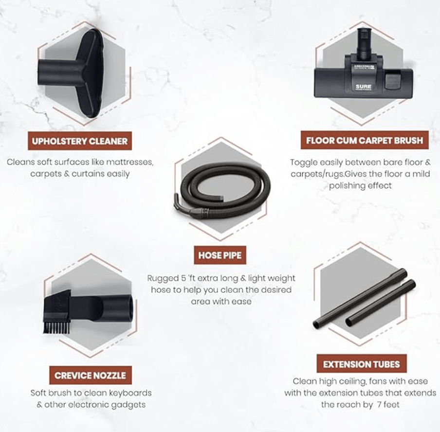 Eureka Forbes Rapid Clean 1150 Watts Powerful Suction Vacuum Cleaner with Reusable dust Bag & 5 Accessories,1 Year Warranty,Compact,Light Weight & Easy to use (Red & Black)