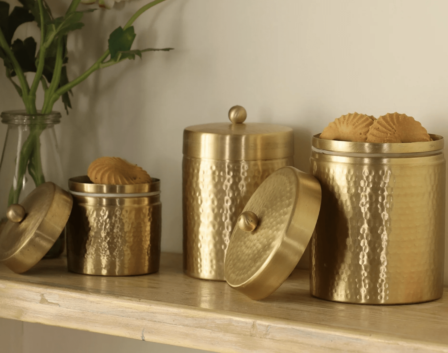 Handcrafted Pure Brass Jar with Lid | Set of 3 | Small, Medium, and Large
