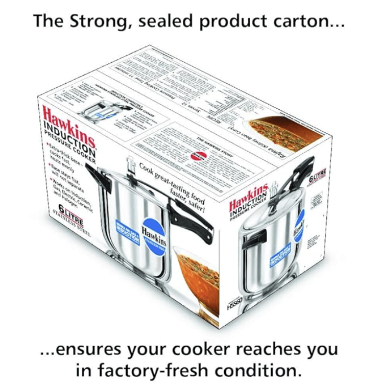 5.8 mm Extra-thick, Heat-Diffusing Sandwich BottomThe pressure cooker body and lid are made of food-grade, superior stainless steel for maximum hygiene and durability. On the outside bottom of the pressure cooker, sandwiched between two sheets of stainless steel, is a core of 4.1 mm thick aluminium, which spreads heat quickly and evenly. This means no hotspots - food will not burn or stick. The external base is made of AISI Grade 430 magnetic stainless steel, which means that your Hawkins stainless steel pressure cooker will work on both gas & induction cooktops. The extra-thick base stays flat and never bulges. It can be used safely for light and deep frying before pressure cooking. |