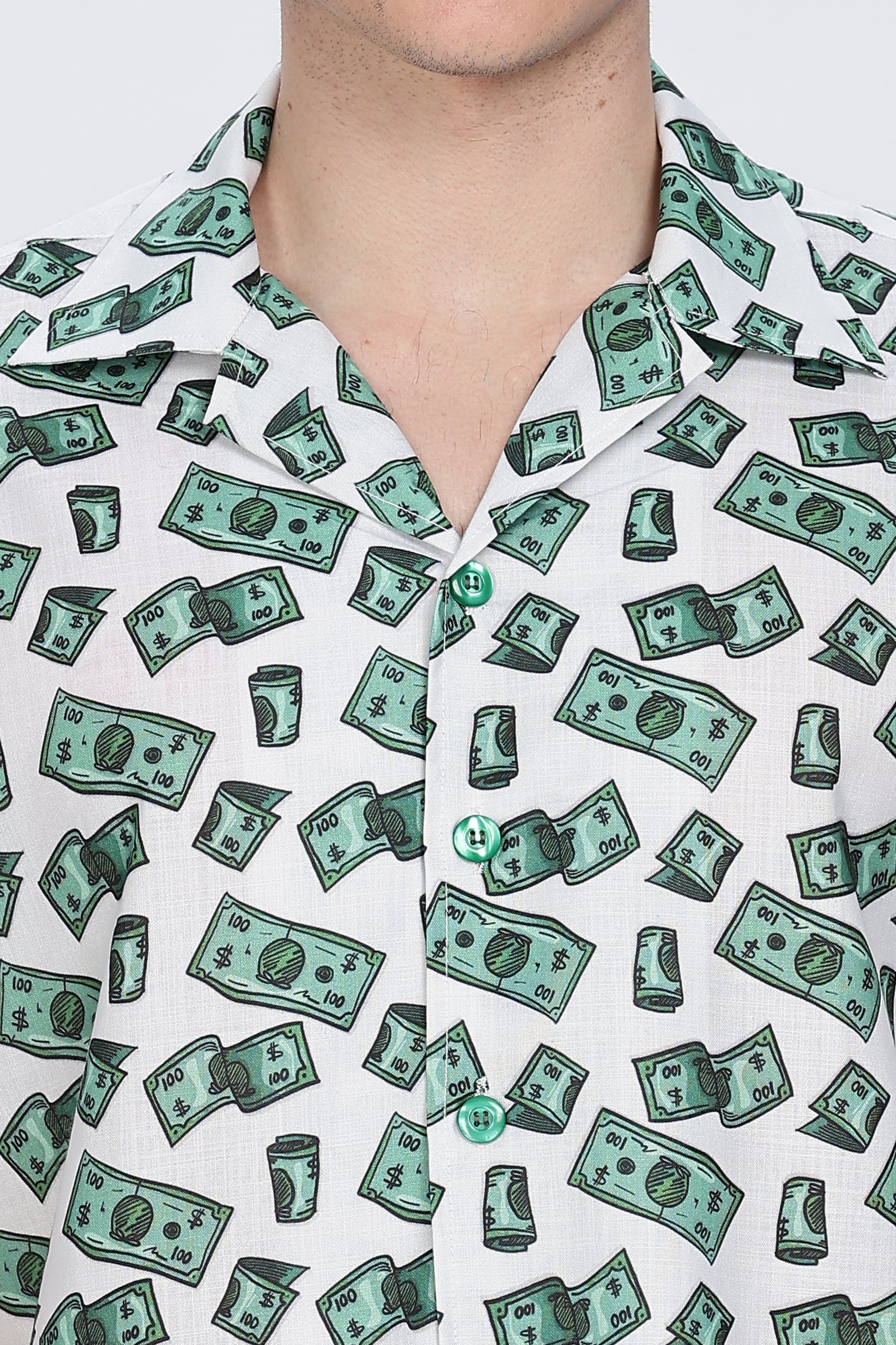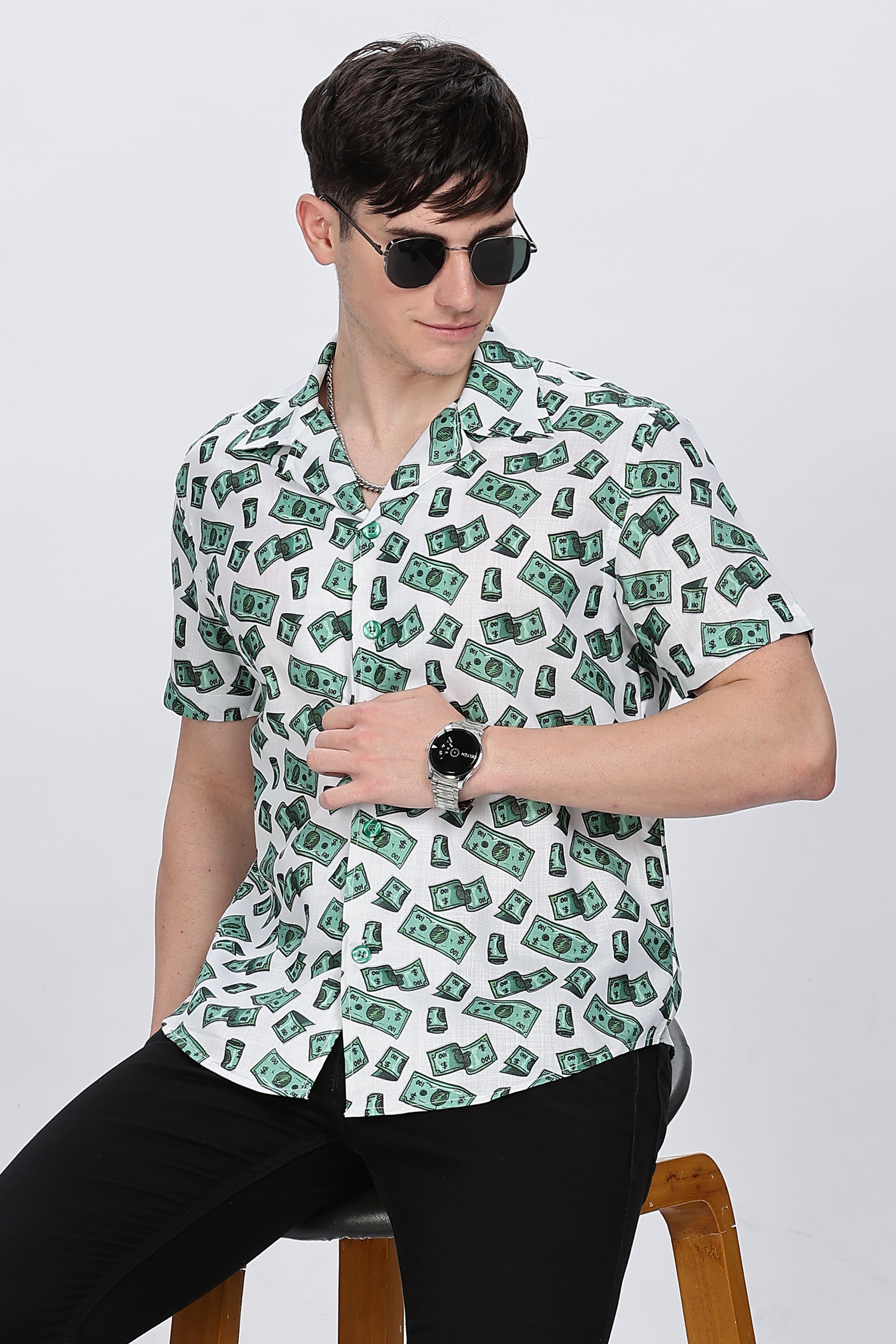 Make a confident style statement with the Retro Men Relaxed Fit Printed Button Down Collar Casual Shirt, designed for men who enjoy bold prints with laid-back comfort. Featuring a playful money-inspired all-over print, this shirt brings a trendy retro vibe to your casual wardrobe.