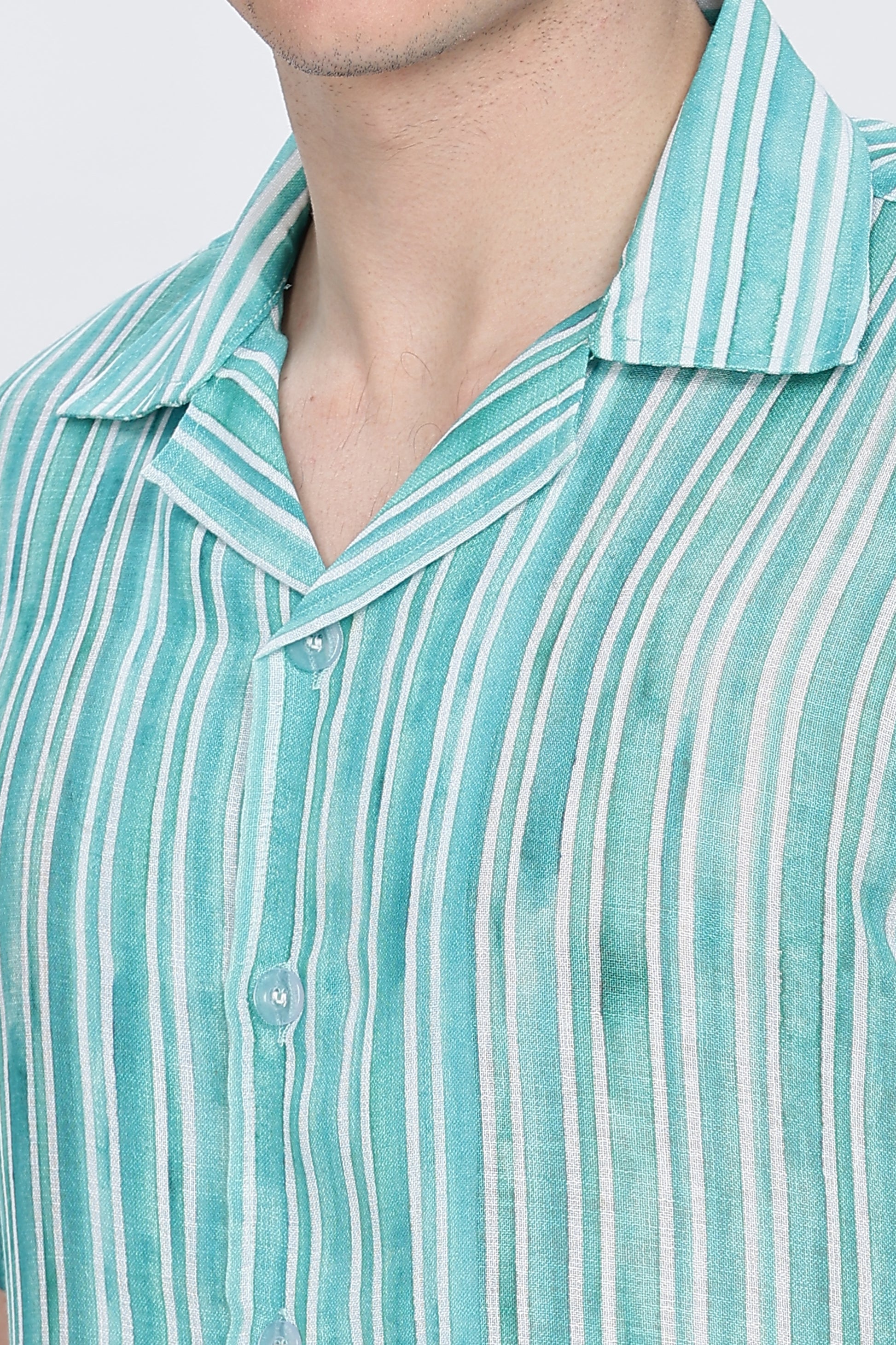 Refresh your casual wardrobe with this Retro Men Regular Fit Printed Button Down Collar Casual Shirt. Designed with a timeless striped pattern in a soothing teal tone, this shirt brings together retro charm and modern comfort. The clean vertical stripes create a smart yet relaxed look, making it a versatile choice for everyday wear.