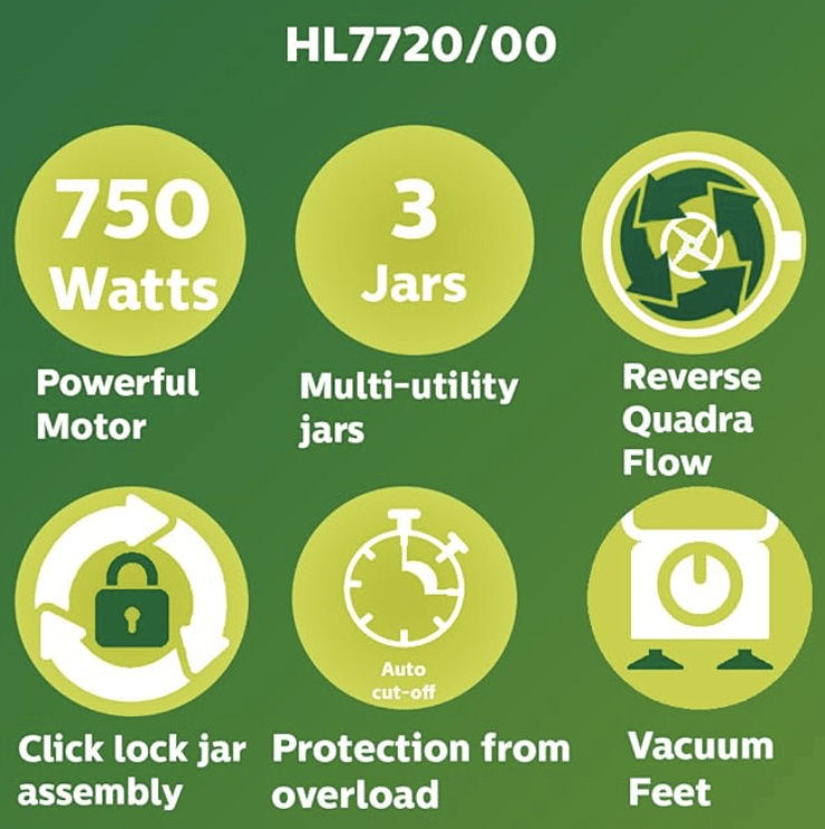 Philips HL 7720 750-Watt Mixer Grinder with 3 Jars (Multicolour)