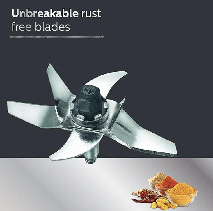 | Included Components | Mixer grinder, Wet jar, Dry jar, Chutney jar, Leak proof jar and Spatula |