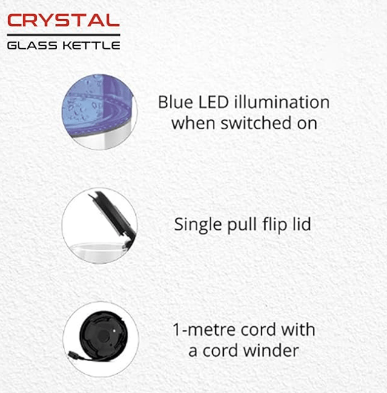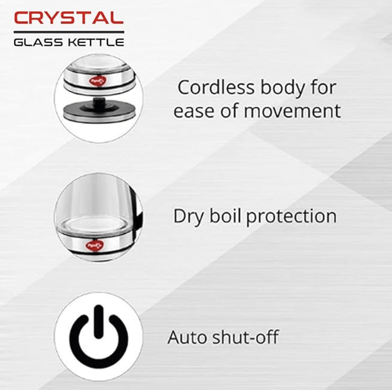 Pigeon by Stovekraft Crystal Glass Electric Kettle 1.8 litre with LED Illumination, Heat Resistant Pyrex 1500 Watt