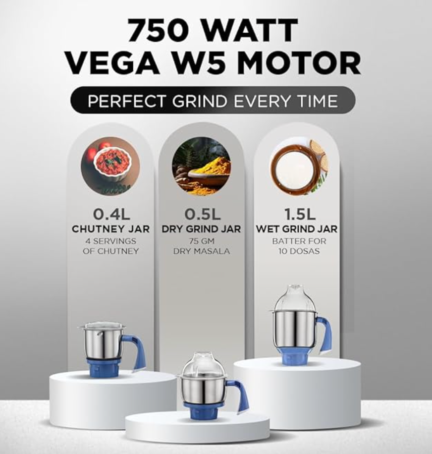- India's No 1 Mixer-Grinder Brand(as per Francis Kanoi), Suitable for Wet Grinding, Liquidizing