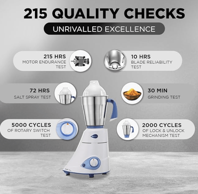 Preethi Platinum MG-153 mixer grinder, 550 watt, 3 jars includes Super Extractor juicer Jar with 2 Air-Tight Containers (White/Blue)