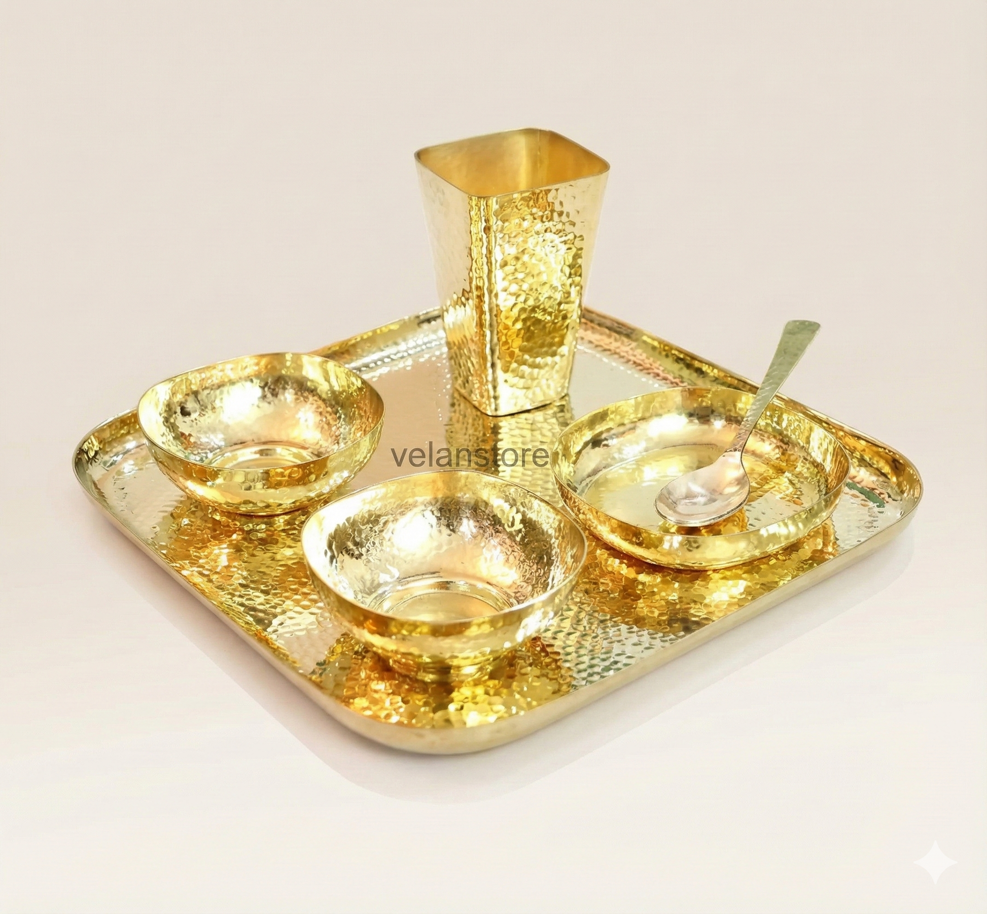 Bring home the magic of traditional craftsmanship with a modern touch. The Velan Store Pure Brass Square Dinner Set is more than just tableware — it's a celebration of heritage, culture, and fine dining.