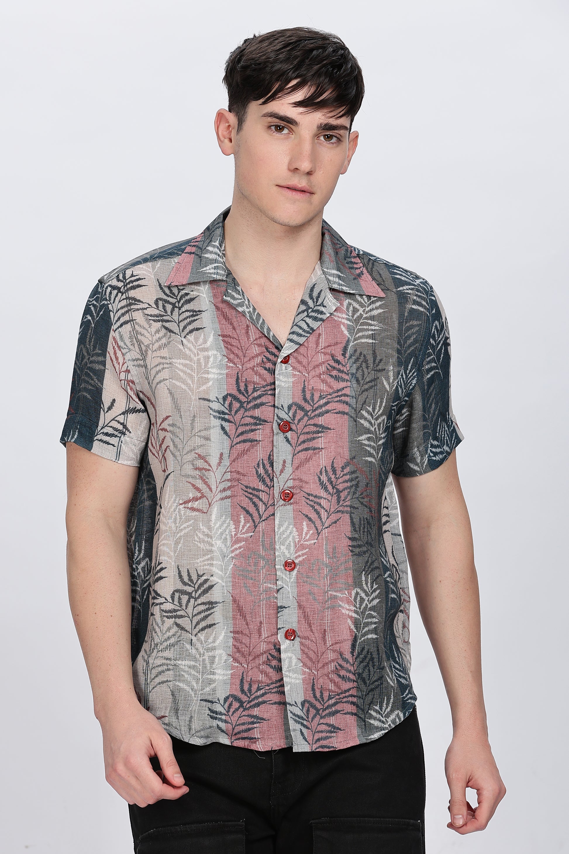 Step into effortless style with the Retro Men Relaxed Fit Printed Casual Shirt, crafted for comfort-driven fashion with a modern retro appeal. Featuring a subtle tropical leaf print blended with earthy and muted tones, this shirt delivers a laid-back yet stylish look perfect for warm days and casual evenings.