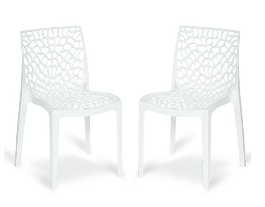 Supreme Web Plastic Dining Chair | Armless Plastic Chair for Home | Office | Cafe | Garden | Indoor&Outdoor Use | Plastic Chair Set of 2 |Colour: White; Set of 2 Chair