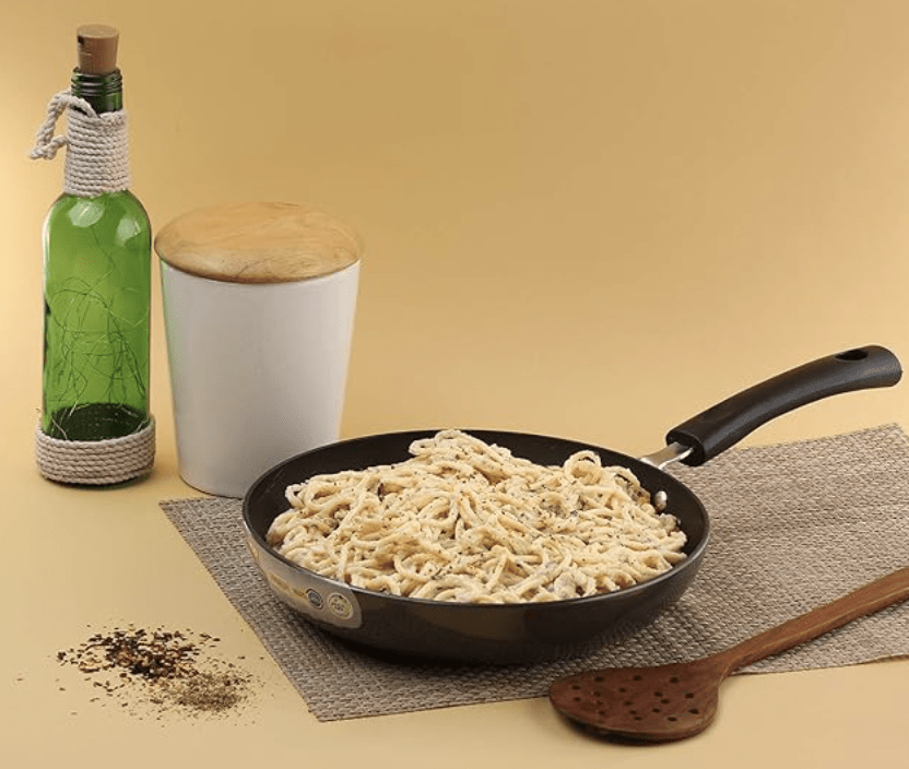 Vinod cookware Hanos Non-Stick Fry Pan 24 cm Diameter, Hard Anodised Non-Stick Coating with 100% Virgin Bakelite Riveted Handle - Black (Induction and Gas Stove Friendly)