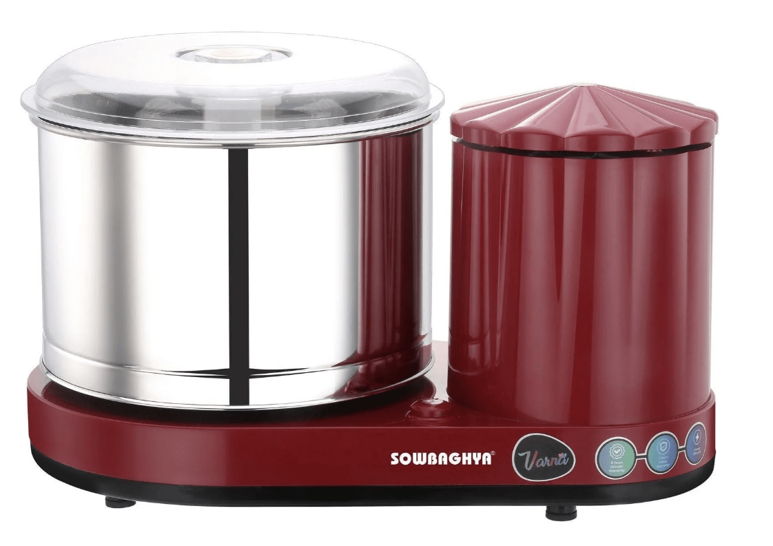 சௌபாக்யா வர்ணா டேபிள் டாப் வெட் கிரைண்டர் 2 லிட்டர் கொள்ளளவு கொண்டது மற்றும் 13 கிலோ எடை கொண்டது. டேபிள் டாப் வெட் கிரைண்டர் குறைந்த இடத்தை எடுத்துக்கொள்வதால் சேமிக்க எளிதானது மற்றும் பயன்படுத்த வசதியானது.