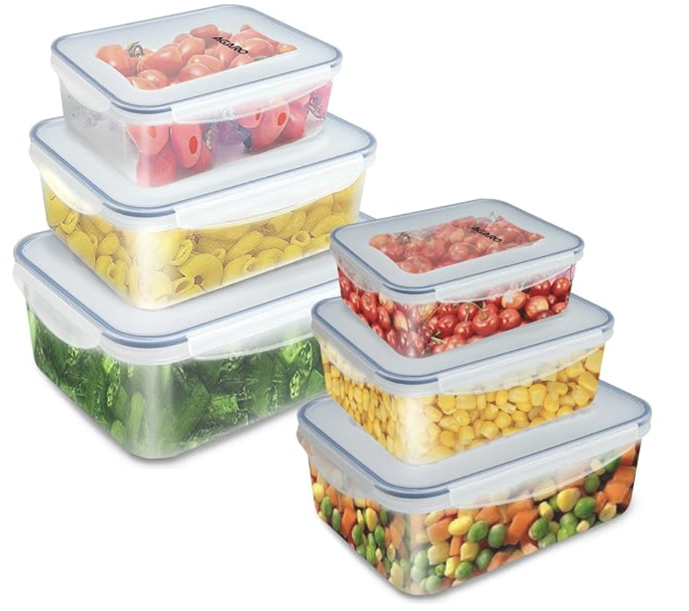 AGARO காற்று புகாத கொள்கலன், மூடியுடன் கூடிய உணவு சேமிப்பு கொள்கலன், பல்நோக்கு சமையலறை கொள்கலன், செவ்வக பிளாஸ்டிக் உடல், BPA இல்லாதது, 6 தொகுப்பு, 120Ml, 240ml, 500ml, 1L, 1.5L, 2.5L