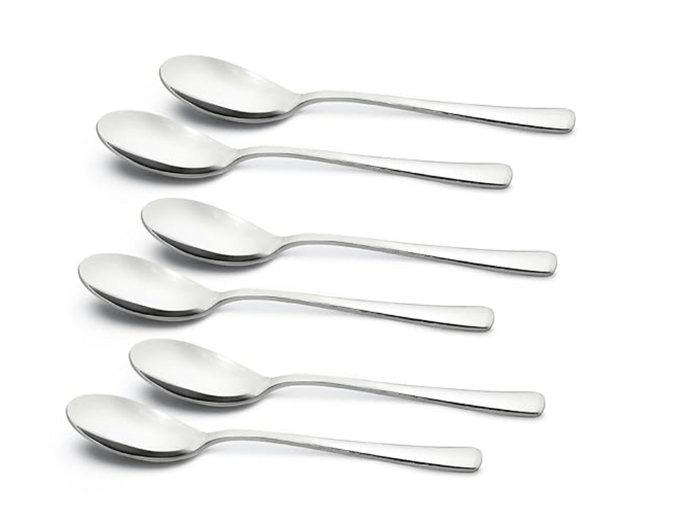பெர்க்னர் பிஇ எசென்ஷியல்ஸ் லூசியா ஸ்டெயின்லெஸ் ஸ்டீல் 6 பிசிக்கள் பேபி ஸ்பூன் செட், 16.1 செ.மீ நீள ஸ்பூன், நவீன பணிச்சூழலியல் ரீதியாக வடிவமைக்கப்பட்ட பிரீமியம் பேபி ஸ்பூன்கள், உணவு தர பாதுகாப்பானது, சுத்தம் செய்ய எளிதானது, 2.5 மிமீ தடிமன் - வெள்ளி