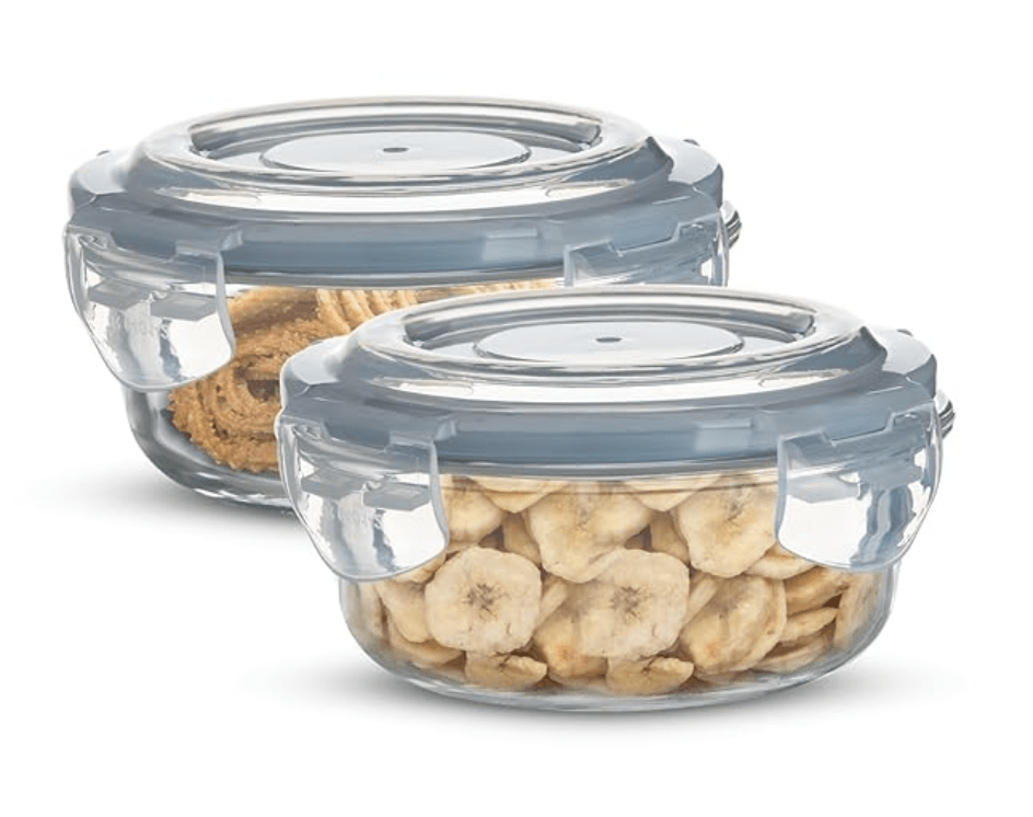சமையலறைக்கான பெர்க்னர் போரோசிலிகேட் கண்ணாடி பக்கவாட்டு பூட்டு வட்ட சேமிப்பு கொள்கலன், காற்று புகாத மற்றும் கசிவு இல்லாத மூடி, BPA இல்லாதது, மைக்ரோவேவ் மற்றும் ஓவன் பாதுகாப்பானது, நீக்கக்கூடிய சிலிகான் ஐஸ் ப்ளூ கேஸ்கெட், ஒவ்வொன்றும் 400 மில்லி (2 தொகுப்பு)