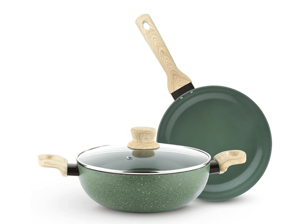 பெர்க்னர் கிரீன்ஃபீல்ட் நான்-ஸ்டிக் 3 பிசிக்கள் சமையல் பாத்திர தொகுப்பு - 24 செ.மீ (2.5 எல்) கடாய் கண்ணாடி மூடி மற்றும் 24 செ.மீ பிரைபன், பீங்கான் பூச்சு, விரைவான மற்றும் சீரான வெப்ப விநியோகம் - இண்டக்ஷன் பாட்டம், தீபாவளி/ஆண்டுவிழா பரிசாக