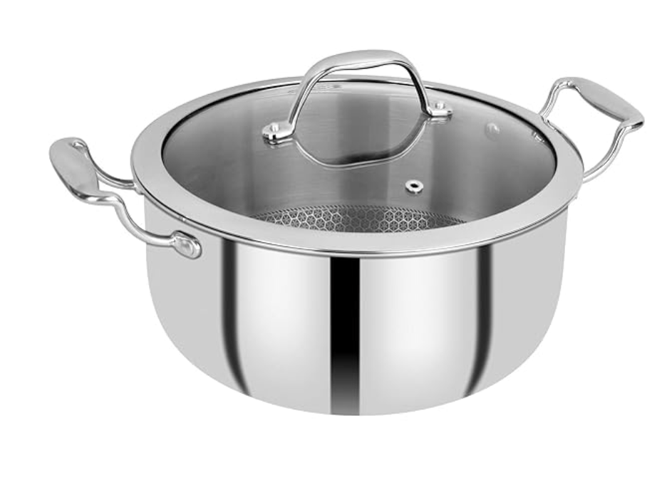 பரிமாறும் பாத்திரம் டெம்பர்டு கிளாஸ் மூடியுடன் வருகிறது, இது வேகமாக சமைக்க உதவுகிறது, மேலும் சமைக்கும் போது உணவை கண்காணிக்கவும் உதவுகிறது.