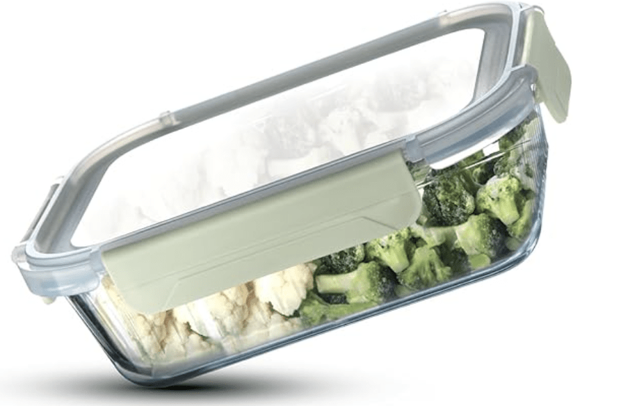 சமையலறை/டிஃபினுக்கான BERGNER ஸ்மார்ட் லாக் போரோசிலிகேட் செவ்வக 1 லிட்டர் உணவு கொள்கலன், பூட்டும் தாவல்களுடன் காற்று புகாத மூடி, இடத்தை சேமிக்கும், அடுக்கக்கூடிய, மைக்ரோவேவ் & ஓவன் பாதுகாப்பானது, உணவு பாதுகாப்பானது, பாத்திரங்கழுவி பாதுகாப்பானது - பச்சை