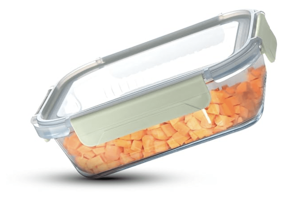சமையலறை/டிஃபினுக்கான BERGNER ஸ்மார்ட் லாக் போரோசிலிகேட் செவ்வக 370மிலி உணவு கொள்கலன், பூட்டும் தாவல்களுடன் காற்று புகாத மூடி, இடத்தை சேமிக்கும், அடுக்கக்கூடிய, மைக்ரோவேவ் & ஓவன் பாதுகாப்பானது, உணவு பாதுகாப்பானது, பாத்திரங்கழுவி பாதுகாப்பானது, பச்சை