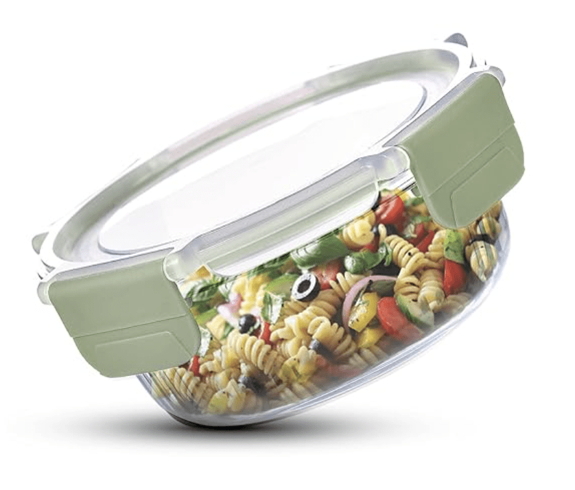 சமையலறை/டிஃபினுக்கான BERGNER ஸ்மார்ட் லாக் போரோசிலிகேட் சுற்று 950மிலி உணவு கொள்கலன், பூட்டும் தாவல்களுடன் காற்று புகாத மூடி, இடத்தை சேமிக்கும், அடுக்கக்கூடிய, மைக்ரோவேவ் மற்றும் ஓவன் பாதுகாப்பானது, உணவு பாதுகாப்பானது, பாத்திரங்கழுவி பாதுகாப்பானது - பச்சை