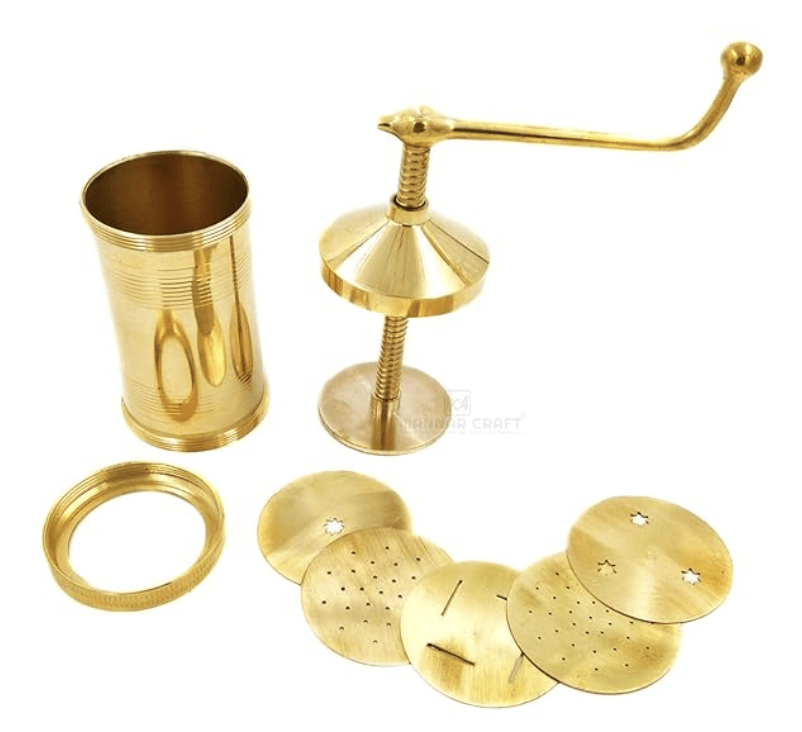 ப்ராஸ் இந்தியன் மேட் செவனாழி சக்கிலி பிரஸ்/சஞ்சா/முறுக்கு/கத்தியா/ஜாந்திகுலு/இடியாப்பம் மேக்கர் மெஷின் இலவச 6 வெவ்வேறு ஜாலிகள்