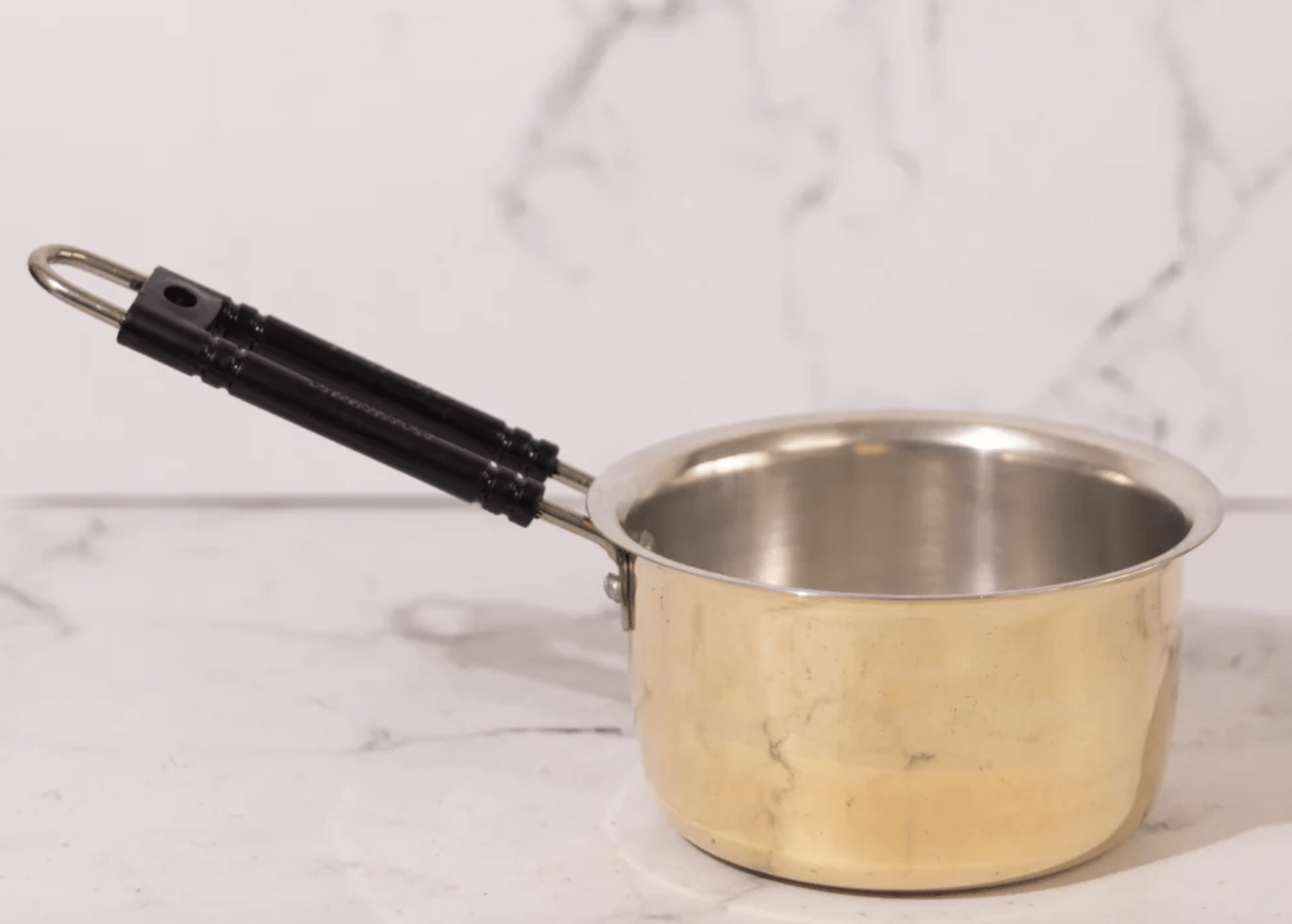 பித்தளை சாஸ் பான் அன்றாட பயன்பாட்டிற்கு ஏற்றது. இந்த கையால் செய்யப்பட்ட பித்தளை பால்/சாஸ் பாத்திரத்தில் பால் கொதிக்க வைக்கவும், தேநீர், காபி, சூப்கள், கஞ்சி (கஞ்சி), காய்கறிகளை வேகவைக்கவும் அல்லது தண்ணீரை மட்டும் தயாரிக்கவும். பித்தளை பாத்திரம் தடிமனாகவும், உயர்தர பித்தளையால் ஆனது, மேலும் வெப்பத்திற்கு உகந்ததாகவும் உள்ளது, இதன் விளைவாக வெப்பம் சமமாக விநியோகிக்கப்படுகிறது மற்றும் சமையலுக்கு சமமாக இருக்கும். ரப்பர் கைப்பிடியுடன் கூடிய எஃகு சமைக்கும் போது நல்ல பிடியை அளிக்கிறது மற்றும் வெப்பத்திலிருந்து தனிமைப்படுத்துகிறது.