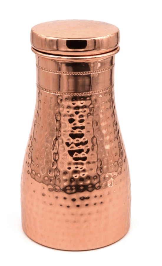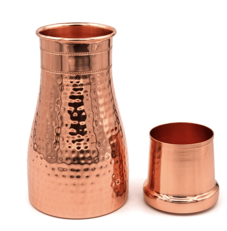 காப்பர் கேரஃப் என்பது ஒரு மூடியுடன் கூடிய பல்துறை பிளாஸ்க் ஆகும், இது ஒரு டம்ளராகவும் பயன்படுத்தப்படலாம். அதன் எடுத்துச் செல்லக்கூடிய தன்மை உங்கள் அன்றாட தண்ணீர் பாட்டிலுக்கு சரியான தேர்வாக அமைகிறது. செம்பு பாத்திரங்களில் தண்ணீரை சில மணி நேரம் சேமித்து வைப்பது நன்மை பயக்கும் தாதுக்களை உங்கள் தண்ணீரில் ஊற்ற அனுமதிக்கிறது, இது உட்கொள்ளும்போது அதன் ஆரோக்கிய நன்மைகளை மேம்படுத்துகிறது. காப்பரின் உள்ளார்ந்த பாக்டீரியா எதிர்ப்பு மற்றும் நுண்ணுயிர் எதிர்ப்பு பண்புகள் அதை நீர் சேமிப்பிற்கு ஒரு சிறந்த தேர்வாக ஆக்குகின்றன.