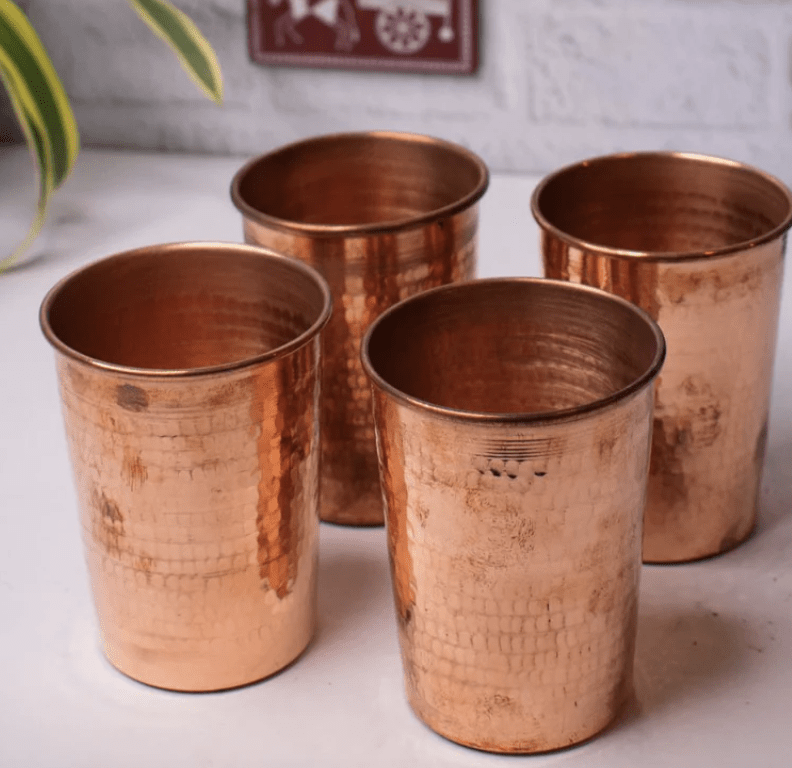 2, 4 மற்றும் 6 டம்ளர்கள் கொண்ட செட்களில் கிடைக்கும் எங்கள் செப்புக் கண்ணாடிகளை அறிமுகப்படுத்துகிறோம். மகாராஷ்டிராவைச் சேர்ந்த கைவினைஞர்களால் மிக உயர்ந்த தரமான செம்பைக் கொண்டு கைவினைஞர்களால் தயாரிக்கப்பட்டது, அவர்களின் வம்சாவளி சிவாஜி மகாராஜின் காலத்திற்கு முந்தையது. தூய செம்பில் தண்ணீரைச் சேமிப்பது தண்ணீரில் உள்ள அனைத்து செயலில் உள்ள பாக்டீரியாக்கள் மற்றும் வைரஸ்களில் 95% ஐ அழிக்கக்கூடும், இதனால் பெரிய உடல்நலப் பிரச்சினைகளைத் தடுக்க உதவுகிறது என்று நவீன ஆராய்ச்சி வெளிப்படுத்தியுள்ளது. எங்கள் தூய செம்புக் கண்ணாடிகளிலிருந்து குடிநீரின் ஆரோக்கிய நன்மைகளை அனுபவிக்கவும். ஒவ்வொரு சிப்பிலும் தாமிரத்தின் இயற்கையான ஆண்டிமைக்ரோபியல் பண்புகள் உட்செலுத்தப்பட்டுள்ளன, இது புத்துணர்ச்சியூட்டும் மற்றும் புத்துணர்ச்சியூட்டும் அனுபவத்தை உறுதி செய்கிறது. எங்கள் செப்புப் பொருட்கள் NABL அங்கீகாரம் பெற்ற ஆய்வகங்களில் கடுமையாக சோதிக்கப்படுகின்றன மற்றும் அபாயகரமான பொருட்களின் கட்டுப்பாடு (RoHS) க்கான EU தரநிலைகளுக்கு இணங்குகின்றன.