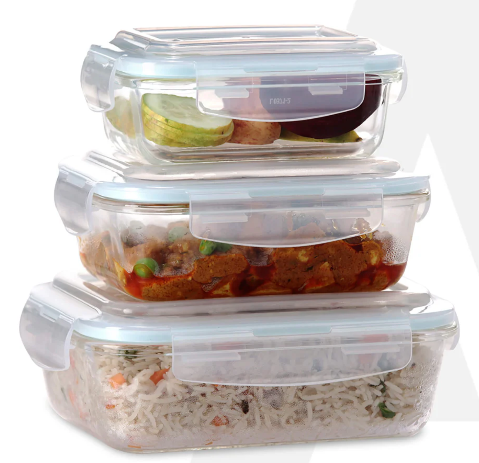 எலைட் கண்ணாடி கொள்கலன், 3 பிசிக்கள் தொகுப்பு - 370, 640,1040 மிலி
