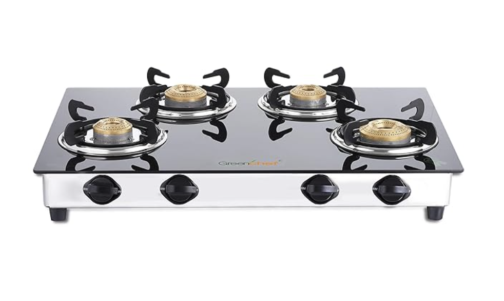 கிரீன்செஃப் நெக்ஸா 4 பர்னர் கிளாஸ் டாப் கேஸ் ஸ்டவ், ஐஎஸ்ஐ சான்றளிக்கப்பட்ட (4 பர்னர்) கையேடு, கருப்பு