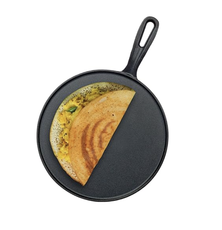 கிரீன்செஃப் முன்-பதப்படுத்தப்பட்ட வார்ப்பிரும்பு ஜெஸ்டோ தோசா தவா 28 செ.மீ | 100% காய்கறி எண்ணெயுடன் முன்-பதப்படுத்தப்பட்ட | இயற்கையாகவே நான்ஸ்டிக் | உயர் அழுத்த வார்ப்பு | அதிக வலிமை | ஏக்க சுவையை மீண்டும் கொண்டு வாருங்கள் | நச்சு இல்லாதது