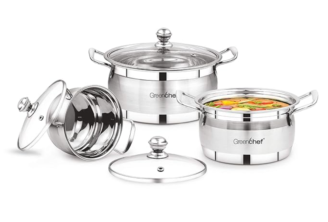 GREENCHEF ஸ்டெயின்லெஸ் ஸ்டீல் குக் அண்ட் சர்வ் செட் (வெள்ளி)