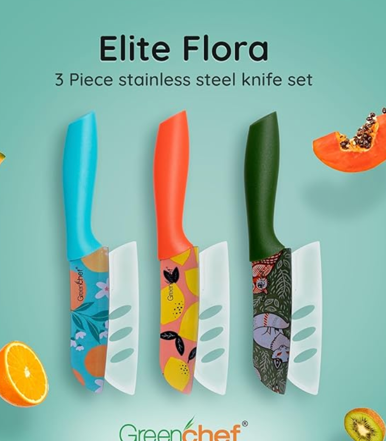 GREENCHEF ஸ்டெயின்லெஸ் ஸ்டீல் கத்தி 3 பிசிக்கள் தொகுப்பு - எலைட் ஃப்ளோரா