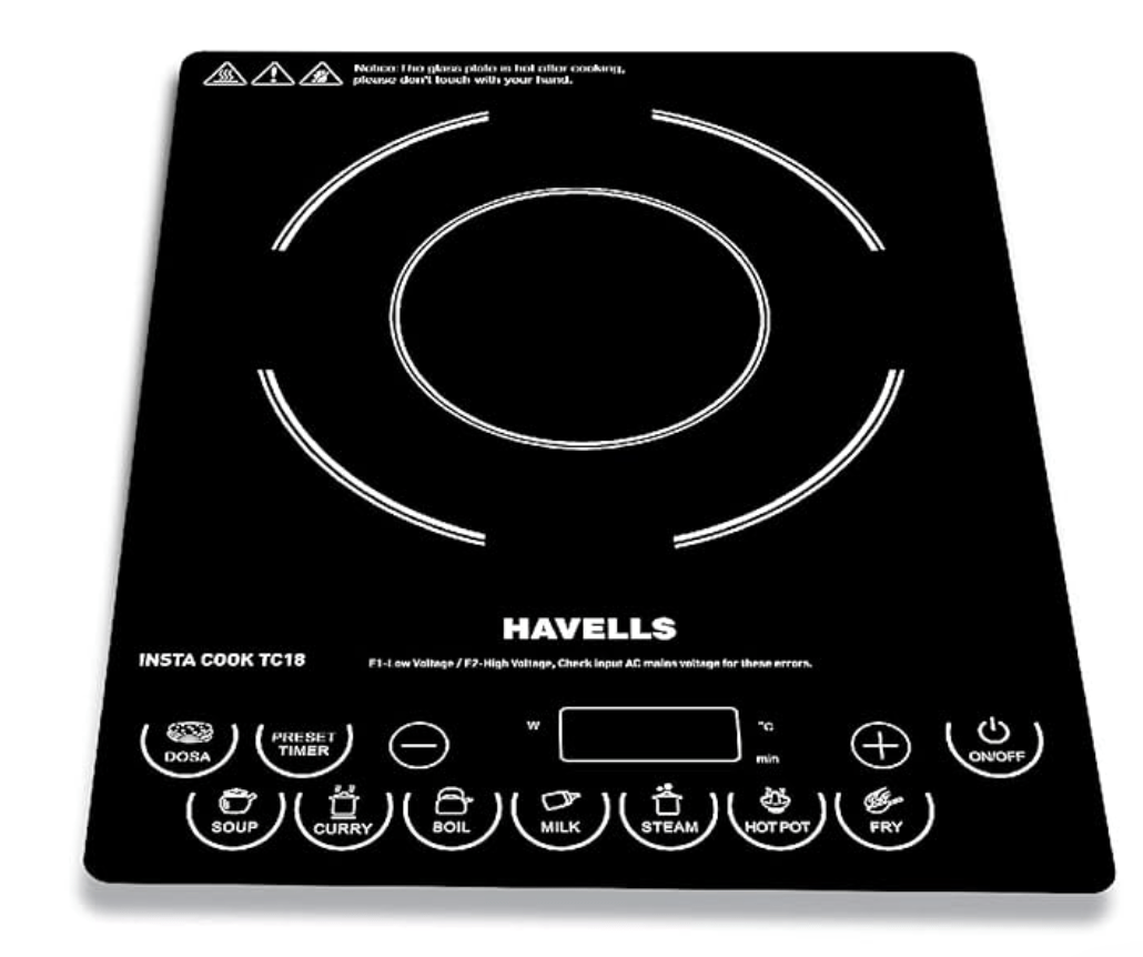 ஹேவெல்ஸ் இண்டக்ஷன் குக்டாப் டிசி 18 1800 வாட் (கிரிஸ்டல் கிளாஸ், கருப்பு) (Ghcicdqk180)