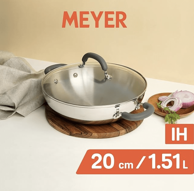 மேயர் ட்ரிவன்டேஜ் நிக்கல் இல்லாத ஸ்டெயின்லெஸ் ஸ்டீல் ட்ரிப்ளி கடாய் | மூடியுடன் கூடிய ஸ்டீல் கதாய் | தூண்டல் தளத்துடன் கூடிய ஸ்டெயின்லெஸ் ஸ்டீல் சமையல் பாத்திரங்கள் | சிறிய ஸ்டெயின்லெஸ் ஸ்டீல் கதாய் | ஆழமாக வறுக்க, 20 செ.மீ., வெள்ளி கொண்ட கதாய்
