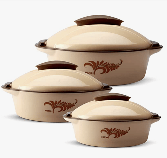 மில்டன் க்ரிஸ்ப் டிஎல்எக்ஸ் இன்சுலேட்டட் இன்னர் ஸ்டீல் கேசரோல், 3 தொகுப்பு, (430 மிலி, 1.05 லிட்டர், 1.70 லிட்டர்) பிரவுன்