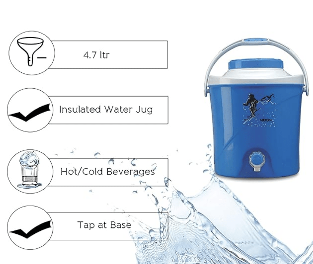 மில்டன் கூல் ஸ்டாலியன் 5 இன்சுலேட்டட் பிளாஸ்டிக் வாட்டர் ஜக், 4.7 லிட்டர், 1 பீஸ்