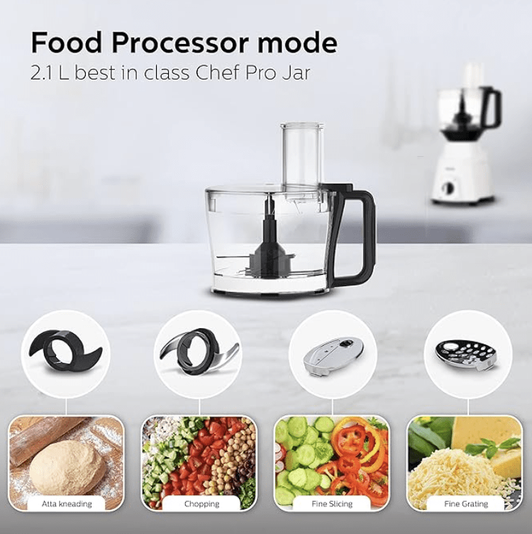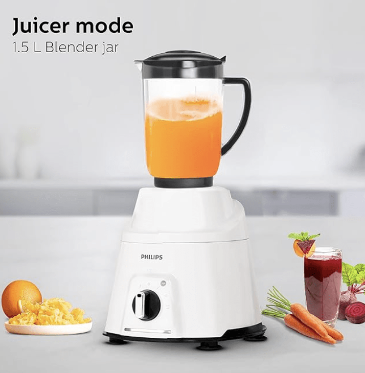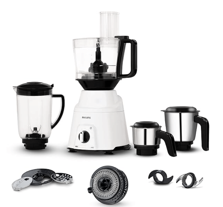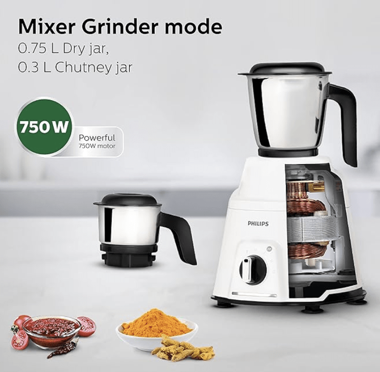 பிலிப்ஸ் மிக்சர் கிரைண்டர் 750 வாட், 3 இன் 1 (மிக்சர் கிரைண்டர் + ஜூஸர் + ஃபுட் பிராசசர்) 4 ஜாடி மற்றும் மோட்டார் 5 வருட உத்தரவாதத்துடன். (HL7763/00)