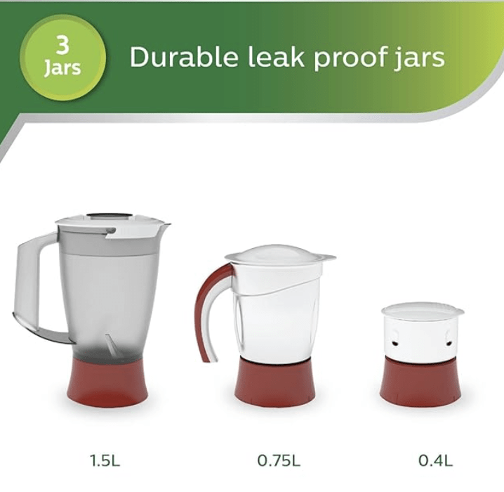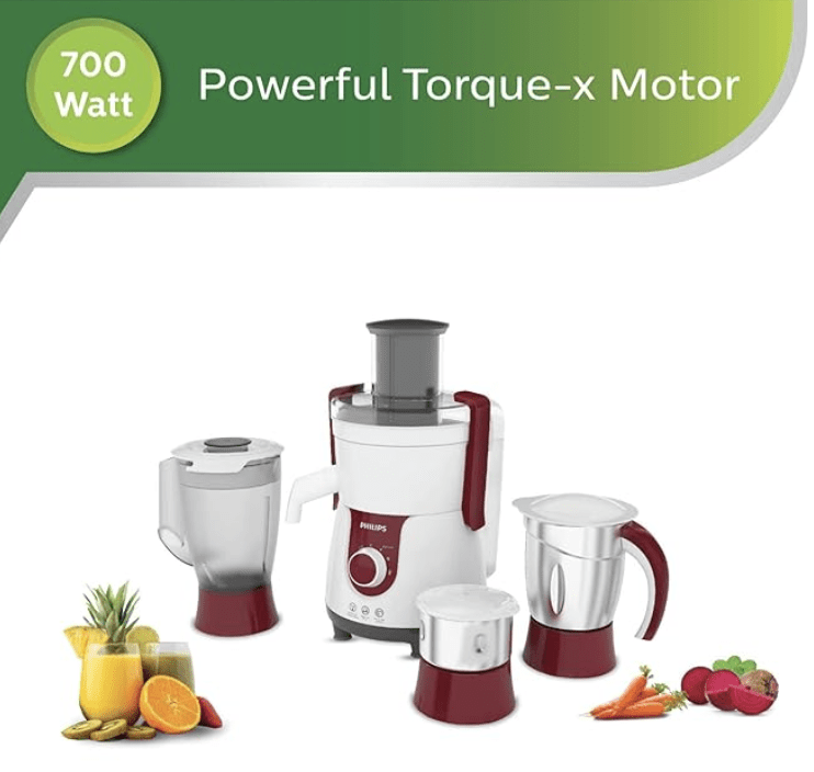 பிலிப்ஸ் விவா HL7715 700-வாட் ஜூஸர் மிக்சர் கிரைண்டர் 3 ஜாடிகளுடன் (பிஸ்டில் சிவப்பு/வெள்ளை)