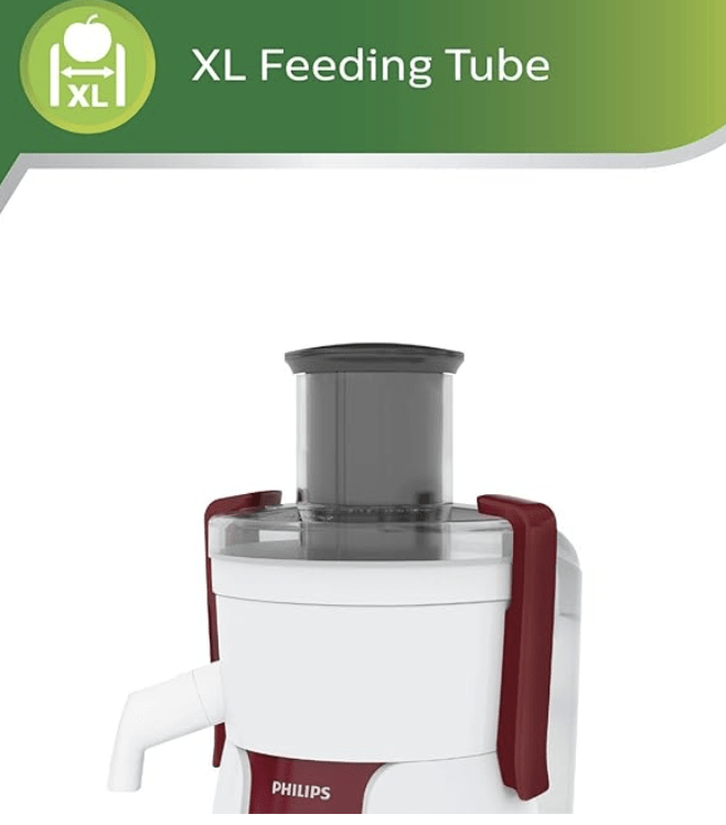 XL ஃபீடிங் டியூப்நேரத்தை மிச்சப்படுத்தி, விரைவாக ஜூஸ் செய்யத் தொடங்குங்கள். இந்த ஜூஸ் இயந்திரத்திற்காக இனிமேல் நீங்கள் பெரும்பாலான பழங்கள் மற்றும் காய்கறிகளை வெட்ட வேண்டியதில்லை. XL ஃபீடிங் குழாயில் அனைத்தையும் போட்டு, தினமும் ஊட்டச்சத்தை அதிகரிக்கவும். |