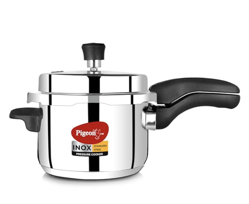 பாதுகாப்பான, நீடித்து உழைக்கக்கூடிய மற்றும் உங்கள் உணவில் உள்ள ஊட்டச்சத்துக்கள் மற்றும் வைட்டமின்களைப் பாதுகாக்க சிறந்த வழியான தொழில்நுட்பமான Pigeon's Inox Pressure Cooker உடன் ஆரோக்கியமான சமையல் முறைக்கு மாறுங்கள். தனித்துவமான 3-அடுக்கு அமைப்புடன் தயாரிக்கப்பட்ட உயர் தர ஸ்டெயின்லெஸ் ஸ்டீல் அடுக்கு உணவு பாதுகாப்பாகவும் சுவையாகவும் இருப்பதை உறுதி செய்கிறது, அலுமினியத்தின் இரண்டாவது அடுக்கு சீரான வெப்பத்தை உறுதி செய்கிறது மற்றும் மூன்றாவது அடுக்கு தூண்டல் இணக்கத்தன்மையை வழங்குகிறது. எரிவாயு அல்லது தூண்டலில் இருந்தாலும் சில நிமிடங்களில் சுவையான உணவை சமைக்கத் தயாராக உள்ளது!.