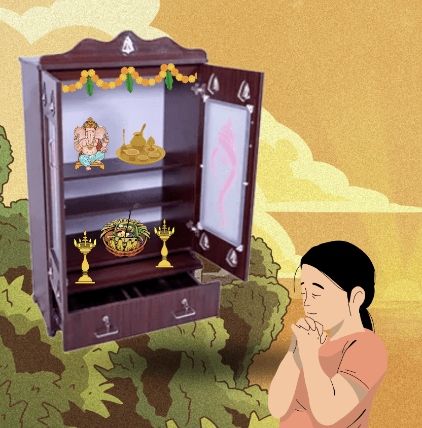 வீட்டு அலங்காரம் மற்றும் வழிபாட்டிற்கான அழகான 4-பிரேம் பூஜா ஸ்டாண்ட்